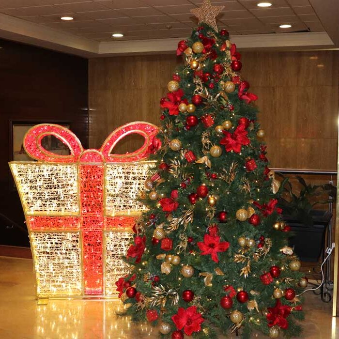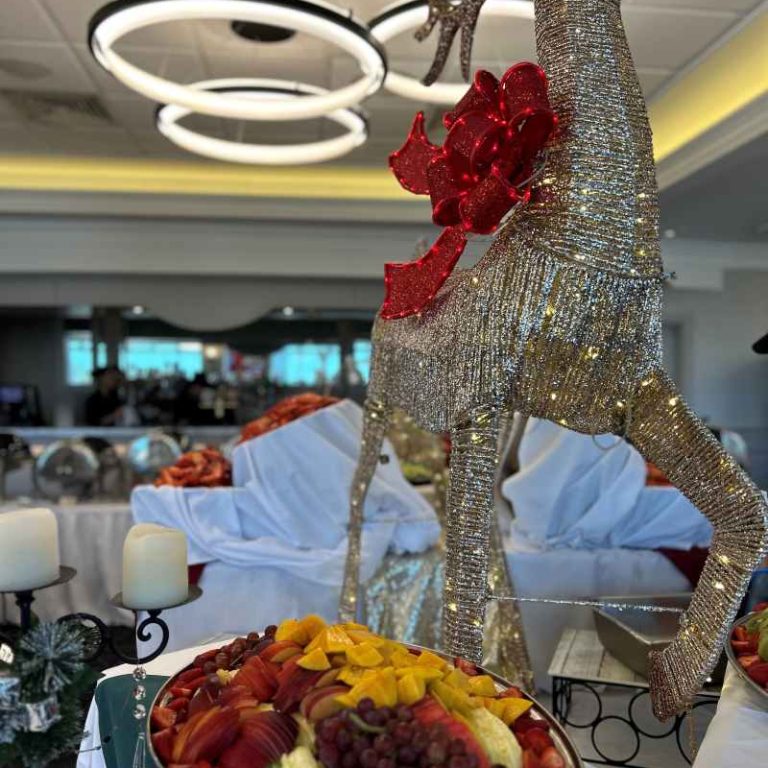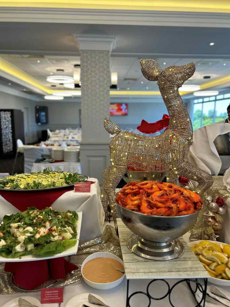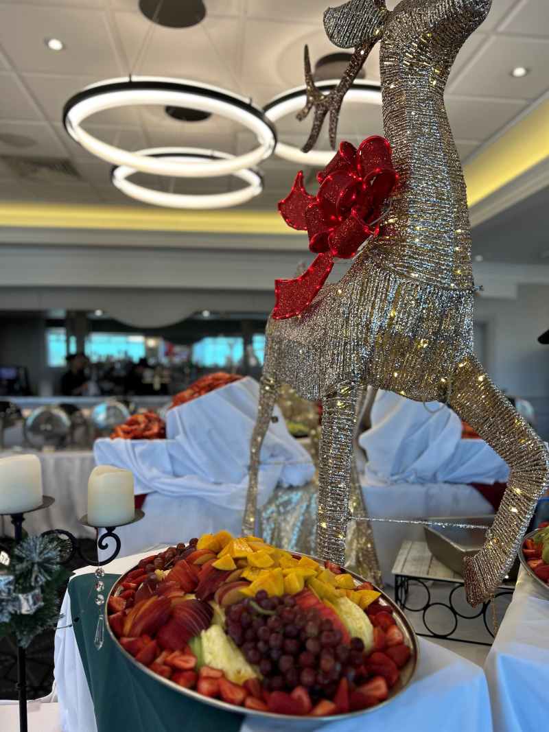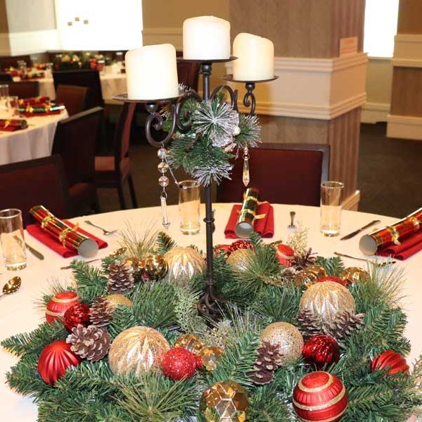 Take your Christmas celebration to the next level to give your guests something to post about on socials. Optional extras include red carpet, decorations, chair covers, photobooth, professional DJ, accent lighting and more. The Club decorations also make for a festive photo op.